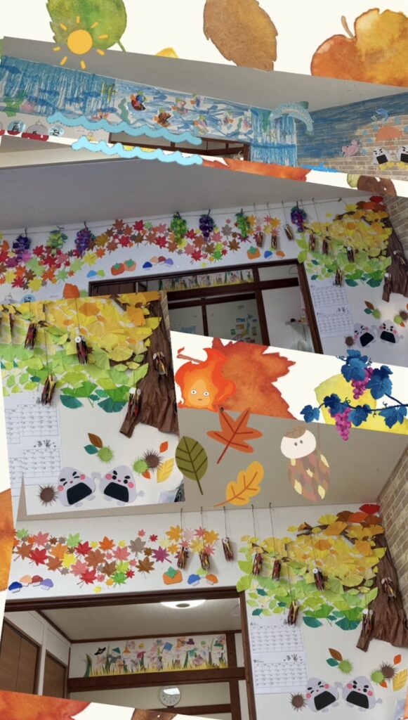 そして最後は、おにぎりさんの壁も季節に合わせて模様替えを行いました🍂🍇