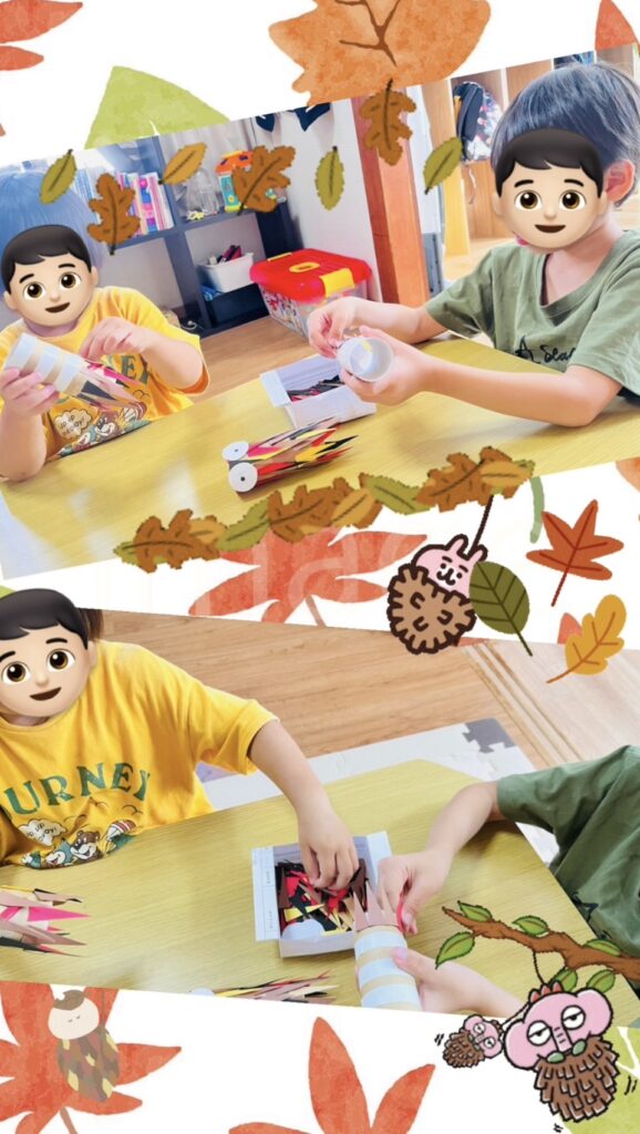 意外と貼る画用紙が細かくて指先をよく使うので苦戦していました😂