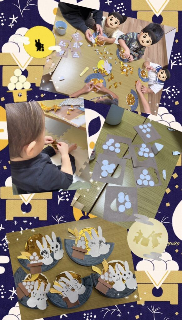 そして、10月には十五夜があるのでお月様とうさぎの制作を行いました🎑
